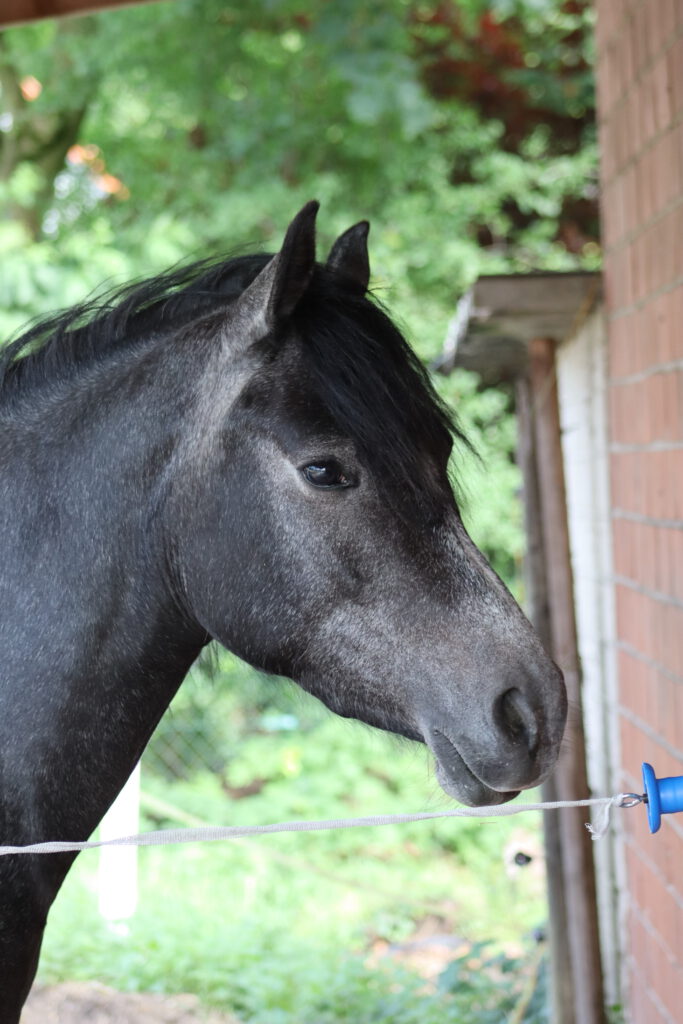 Seit Anfang 2022 befinde ich mich in Ausbildung zum Reitpferd. Regelmäßig darf ich bereits Kinder auf meinem Rücken tragen und in der Ponyschule als Putz- und Bodenarbeitspony aushelfen. Für meine Zugewandtheit und meinen Verlass werde ich immer ganz viel gelobt. Das Arbeiten mit Menschen macht mir viel Freude, weil es immer so viel zu entdecken gibt.